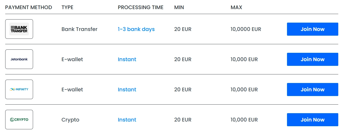 | Geaccepteerde Valuta | EUR, BTC, meer |