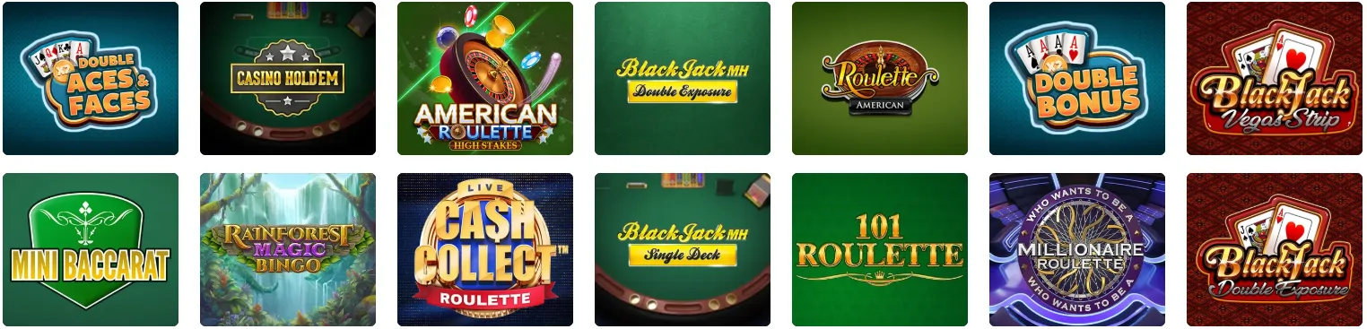 Traditionele casinospellen vormen een selectieve maar kwalitatieve collectie met 78 verschillende varianten. Roulette verschijnt in meerdere vormen waaronder Europees, Frans en Amerikaans, elk met eigen inzetlimieten variërend van €0,10 tot €2.500 per draai. Blackjack-varianten omvatten klassiek spel, maar ook Single Deck, Double Exposure en Perfect Pairs met side bets tot 25:1 uitbetaling.