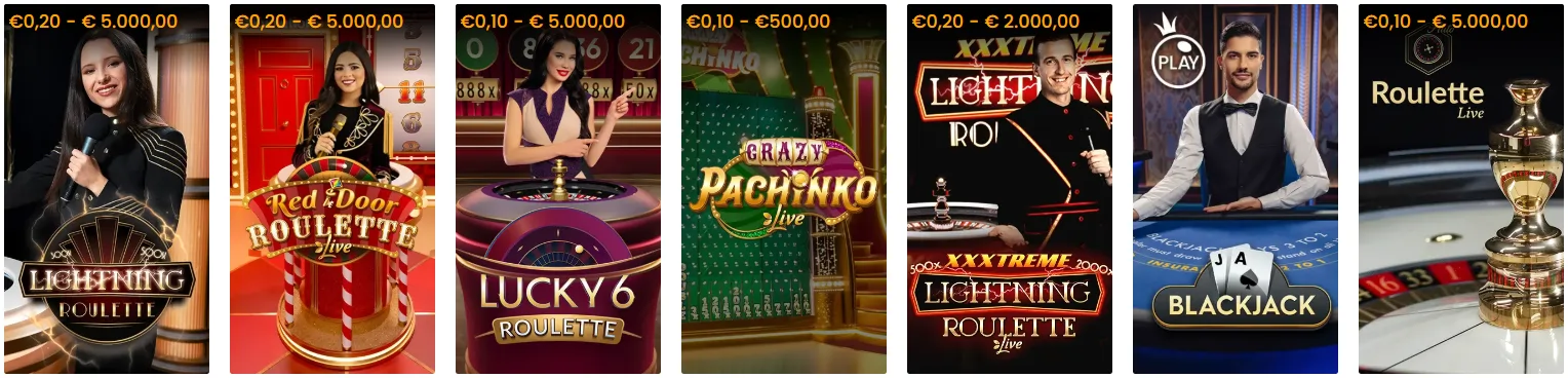Evolution Gaming en Pragmatic Play Live domineren de live dealer sectie met in totaal 127 tafels verdeeld over verschillende speltypen en inzetniveaus. Game shows zoals Crazy Time en Monopoly Live trekken veel aandacht met hun vermenigvuldigers tot 10.000x en interactieve bonusrondes. Lightning Roulette transformeert het klassieke roulettegevoel door elektriserende vermenigvuldigers tussen 50x en 500x toe te voegen aan rechte inzetten.