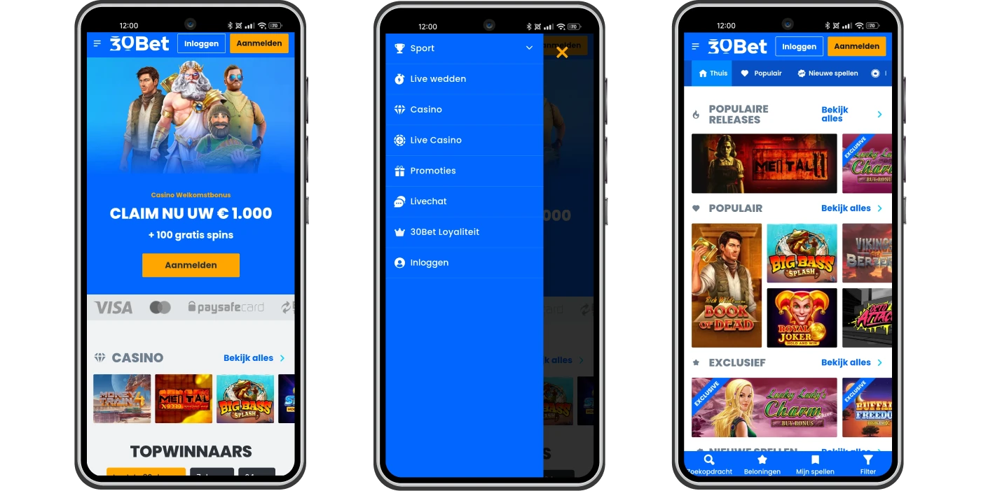 Wij hebben ervaren dat 30bet een prettige speelomgeving biedt op mobiele apparaten. Het platform is volledig responsief en past zich moeiteloos aan zowel smartphones als tablets aan. Tijdens ons gebruik testten wij de mobiele versie op een recente iPhone en een Android-apparaat.