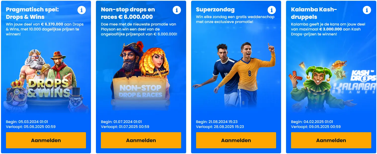 Dagelijkse en wekelijkse toernooien domineren het aanbod met twee prominente series. Pragmatic Play’s Drops & Wins manifesteert zich als vaste waarde met prijzen die automatisch vallen tijdens het spelen. Deze netwerkcompetitie verbindt spelers over meerdere casino’s, wat de prijzenpot substantieel verhoogt ten opzichte van exclusieve interne toernooien.
