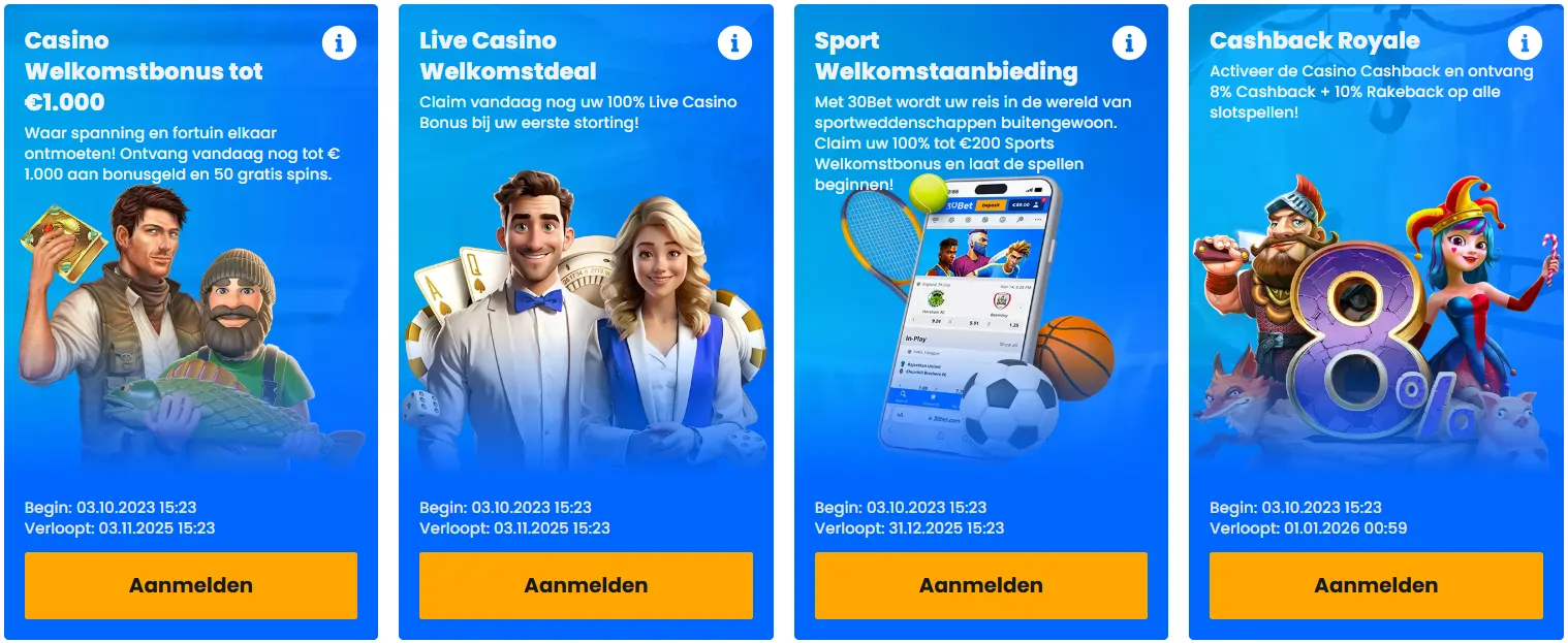 Bent u op zoek naar een betrouwbaar online casino dat al sinds 2023 innoverende spelbeleving biedt? Bij 30bet ervaart u een moderne, gebruiksvriendelijke interface en een uitgebreid spelaanbod, van klassieke gokkasten tot live casino en sportweddenschappen. Met een transparante licentie vanuit Montenegro en een focus op verantwoord spelen, staat 30bet garant voor veiligheid en betrouwbaarheid. Onze experts waarderen met name de aantrekkelijke welkomstbonus en de efficiënte klantenservice via livechat en e-mail. Claim vandaag nog uw bonus en ontdek hoe 30bet uw online gokervaring naar een hoger niveau tilt.
